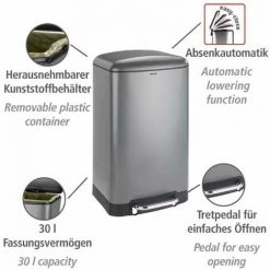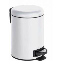 WENKO Poubelle à Pédale Leman, Petite Poubelle Salle De Bain, Capacité 5L, Acier, 21x24x28 Cm, Blanc