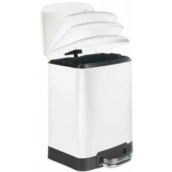 WENKO Poubelle Salle De Bain Inca Blanc, Petite Poubelle Salle De Bain 5L, Lot De 2 éponges Offertes