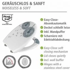 WENKO Abattant WC Avec Frein De Chute Urbino, Abattant WC Avec Fixation Inox, MDF, 36×42,5 Cm, Blanc