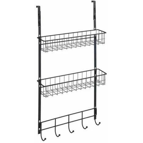 - Pour un espace de rangement supplémentaire : La moderne étagère suspendue avec 2 paniers de rangement et 5 crochets met fin aux problèmes d’ordre et offre beaucoup de place pour les ustensiles de cuisine et les accessoires de salle de bain.