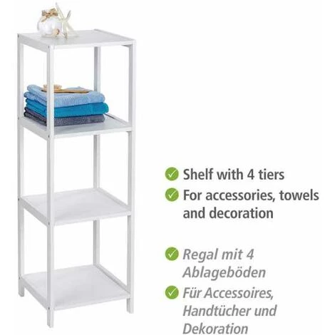 L’aura claire du bois naturel verni blanc, les lignes sobres et les possibilités d’utilisation de la série de meuble salle de bain bois Oslo font des meubles de cette série une parfaite combinaison de design et de fonctionnalité pour l’intérieur. Avec ses quatre tablettes de rangement, l’étagère salle de bain bois de la série Oslo offre beaucoup de place pour les serviettes, la décoration et les accessoires. La série de meubles salle de bain aux finitions haut de gamme, en bois massif, donne dans chaque foyer le ton d’un aménagement intérieur scandinave fidèle à la tendance, que ce soit dans la salle de bain, la chambre à coucher, la chambre d’enfants, le séjour ou encore la cuisine.