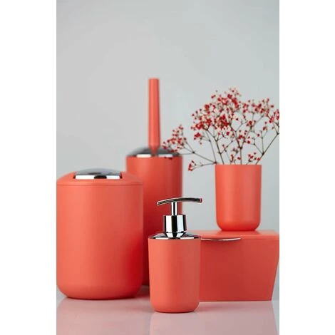 La remarquable stabilité et la couleur originale font du distributeur de savon Brasil un véritable point de mire visuel. Le distributeur de couleur tendance corail convainc par sa qualité et son design. Grâce à la matière plastique spéciale, le gobelet obtient une résistance à la cassure particulière et garantit ainsi une utilisation durable. La couronne est chromée et fait un effet harmonieux en combinaison avec la partie inférieure du distributeur. Le jolie distributeur de savon peut être rempli au choix de 320 ml de savon liquide ou de lotion de douche. Une légère pression sur le bouton de dosage délivre la quantité de savon ou de lotion souhaitée. Le distributeur de savon, attrayant, fait bonne mine dans la cuisine également, par exemple près de l’évier. Le remplir tout simplement de liquide vaisselle et voilà que sont finis les temps des flacons en plastique qui ne paient pas de mine. Le distributeur de savon de couleur corail se combine parfaitement avec les autres accessoires de la série Basil. Matière: Élastomère thermoplastique (TPE) Couleur: Rouge corail Dimensions L/H/L: 7.3 x 16.5 x 9 cm Poids non emballé: 147 g Doseur de savon rechargeable pour une distribution dosée de savon liquide ou de lotion