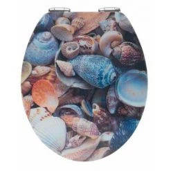 Avec son décor 3D, l’abattant WC Coquillages de WENKO apporte la plage et les souvenirs de vanaces dans vos WC. L’innovante application en 3D exclusive WENKO séduit par ses images tridimensionnelles authentiques, qui illuminent les toilettes tout en créant la surprise. En plus de son design singulier, ce confortable siège de WC intègre des fonctionnalités supplémentaires très pratiques. L’abattant WC est fabriqué en fibres de bois de moyenne densité moulées par compression (MDF). Grâce à son vernis multicouche, il présente une surface facile à nettoyer et résistante à l’humidité. Fini le le claquement bruyant du couvercle de l’abattant grâce au dispositif de descente automatique Easy-Close intégré. Le couvercle du WC se ferme désormais en douceur et silencieusement. La descente amortie empêche également les accidents de coincement de doigts ou de vêtements. Très pratique, la fixation hygiénique Fix-Clip, en zinc inox moulé sous pression, ne permet pas seulement un montage, mais aussi un nettoyage rapides, car le siège entier se démonte et s’installe facilement. Il suffit tout simplement de dévisser une petite vis. Sa fixation s’adapte à tous les modèles de WC courants.