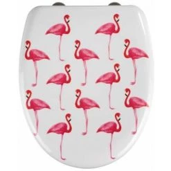 L’abattant WC premium aux finitions exclusives Flamingo de WENKO apporte un charme animal dans chaque salle de bain et WC d’invités. Le beau motif de flamant rose sur le couvercle intérieur et extérieur ovale du siège de WC blanc fait de votre petit coin un véritable point de mire. L’abattant WC haut de gamme n’offre pas seulement un confort agréable à la position assise, mais aussi des fonctionnalités supplémentaires pratiques. Le claquement bruyant appartient au passé grâce au dispositif de descente automatique Easy-Close intégré. Le couvercle du WC se ferme désormais en douceur et silencieusement. La descente lente empêche également le coincement des doigts et des vêtements. Sa fixation hygiénique Fix-Clip à 1 bouton, hygiénique et en acier inox, ne permet pas seulement un montage, mais aussi un nettoyage rapides, car le siège entier se démonte et s’embroche facilement. Sa fixation permet un réglage variable, adapté à tous les WC courants. Le tampon mural est compris de la livraison Un insert en caoutchouc supplémentaire, qui se monte avec la fixation Fix-Clip sur la lunette de WC, empêche le glissement de l’abattant WC. L’abattant WC premium Flamant est fabriqué en duroplastique haut de gamme. Le produit de qualité est doté d’une garantie fabricant de trois an et il est très résistant aux éraflures, incassable, robuste et résiste même aux cendres incandescentes. L’abattant WC à abaissement automatique est donc également parfaitement adapté pour l’utilisation sur les toilettes à fréquentation publique accrue, par ex. dans les magasins, les cabinets ou les bureaux, car il est extrêmement résistant aux éraflures, incassable, robuste et résiste même aux cendres incandescentes. La surface hygiénique est en outre facile à nettoyer. WENKO propose également l’exclusive poubelle cosmétique à pédale, la patère et le rideau de douche Static-Loc®, tous assortis à cet abattant WC aux finitions soignées. Pour ce produit, vous bénéficiez d‘une garantie de 3 ans à compter de la date d‘achat. La garantie porte sur tous les vices de matériau et de fabrication qui altèrent le bon fonctionnement. Sont exclus les dommages résultant d‘un maniement incorrect ou de l‘usure naturelle. La garantie ne restreint aucune vos droits à la garantie légaux. En cas de garantie, veuillez renvoyer gratuitement l‘article accompagné du ticket de caisse et convenablement emballé pour le transport à l‘adresse suivante : Wenko-Wenselaar GmbH & Co. KG · Abteilung « Retouren » Im Hülsenfeld 10 · 40721 Hilden, Allemagne [email protected]ège de toilette: 38 x 45 cm, Lunettes Bague extérieure: 37,5 x 41,5 cm, Ouverture de lunettes: 23 x 27,5 cm, Distance de montage: 10 – 20 cm