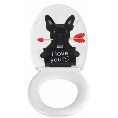 Avec l’abattant WC premium Guilty Dog de WENKO aux finitions haut de gamme, un charme animal s’invite dans chaque salle de bain et WC d’invités. Le drôle motif de chien sur le couvercle intérieur et extérieur ovale du siège de WC fait de votre petit coin un véritable point de mire. L’abattant WC exclusif n’offre pas seulement un confort agréable à la position assise, mais aussi des fonctionnalités supplémentaires pratiques. Le claquement bruyant appartient au passé grâce au dispositif de descente automatique Easy-Close intégré. Le couvercle du WC se ferme désormais en douceur et silencieusement. La descente lente empêche également le coincement des doigts et des vêtements. Sa fixation hygiénique Fix-Clip à 1 bouton, hygiénique et en acier inox, ne permet pas seulement un montage, mais aussi un nettoyage rapides, car le siège entier se démonte et s’embroche facilement. Sa fixation permet un réglage variable, adapté à tous les WC courants. Le tampon mural est compris de la livraison Un insert en caoutchouc supplémentaire, qui se monte avec la fixation Fix-Clip sur la lunette de WC, empêche le glissement de l’abattant WC. L’abattant WC premium Guilty Dog est fabriqué en duroplastique haut de gamme. Le produit de qualité est doté d’une garantie fabricant de trois an et il est très résistant aux éraflures, incassable, robuste et résiste même aux cendres incandescentes. L’abattant WC à abaissement automatique est donc également parfaitement adapté pour l’utilisation sur les toilettes à fréquentation publique accrue, par ex. dans les magasins, les cabinets ou les bureaux, car il est extrêmement résistant aux éraflures, incassable, robuste et résiste même aux cendres incandescentes. La surface hygiénique est en outre facile à nettoyer. WENKO propose également l’exclusive poubelle cosmétique à pédale Guilty Dog, qui est assortie à cet abattant WC aux finitions somptueuses. Pour ce produit, vous bénéficiez d‘une garantie de 3 ans à compter de la date d‘achat. La garantie porte sur tous les vices de matériau et de fabrication qui altèrent le bon fonctionnement. Sont exclus les dommages résultant d‘un maniement incorrect ou de l‘usure naturelle. La garantie ne restreint aucune vos droits à la garantie légaux. En cas de garantie, veuillez renvoyer gratuitement l‘article accompagné du ticket de caisse et convenablement emballé pour le transport à l‘adresse suivante : Wenko-Wenselaar GmbH & Co. KG · Abteilung « Retouren » Im Hülsenfeld 10 · 40721 Hilden, Allemagne [email protected]ège de toilette: 38 x 45 cm, Lunettes Bague extérieure: 37,5 x 41,5 cm, Ouverture de lunettes: 23 x 27,5 cm, Distance de montage: 10 – 20 cm
