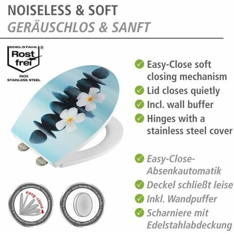 - Ambiance sereine dans la salle de bain : La somptueuse impression avec motif à relief fait de l’abattant WC WENKO en thermoplastique recyclable de haute qualité un élément décoratif dans chaque salle de bain et WC.
