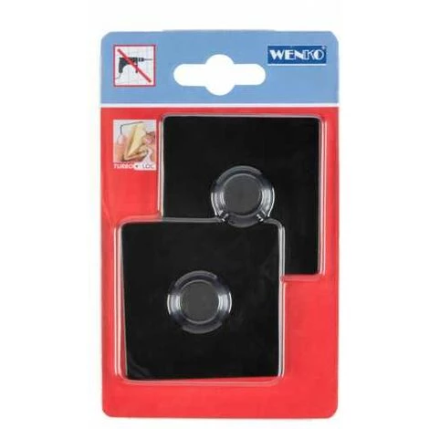Les adaptateurs Turbo-Loc® offrent une alternative de fixation astucieuse au perçage de trous, au vissage, aux vis et aux chevilles. La fixation est un jeu d’enfants. La fixation murale Turbo-Loc® est un système à tampon adhésif offrant une adhérence fiable et forte sur toutes les surfaces lisses. Décoller simplement le film de protection du tampon autoadhésif, fixer le support à l’endroit souhaité et presser. Ensuite, il ne reste plus qu’à poser l’accessoire. Le tampon adhésif se décolle à nouveau sans laisser de traces. La livraison comprend deux adaptateurs Turbo-Loc®. Les deux adaptateurs à tampon adhésif sont adaptés pour la fixation des articles de cuisine Gala WENKO. Comme les accessoires de cuisine, les adaptateurs sont fabriqués en acier plat de qualité supérieure peint par poudrage et de couleur noire tendance.