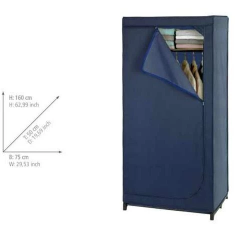 La vaste série d’articles de rangement Business vous offre de nombreuses possibilités pour ranger les vêtements et les textiles à l’abri de la poussière et sans encombrer votre intérieur. Cette série Premium convainc par ses finitions de qualité supérieure et une matière polyester de qualité particulièrement robuste et résistante. Tous les articles de la série d’articles de rangement Business sont conçus pour une utilisation fréquente en voyage et à la maison. L’armoire-penderie de la série Business offre beaucoup de place pour le rangement soigné du linge et des vêtements saisonniers. Elle est dotée d’une barre porte-vêtements pour suspendre vos vêtements sur cintre, d’une tablette de rangement pour les serviettes, les chapeaux ou les pulls, et un espace de rangement supplémentaire. L’armoire-penderie bleue foncée peut parfaitement être utilisée également en tant que portemanteau ou armoire supplémentaire dans la chambre d’invités. Pour les étudiants et les grands voyageurs, la mobilité et le maniement souple de la série de rangement Business sont des avantages majeurs notamment en cas de déménagements fréquents ou lors de l’aménagement d’un appartement secondaire. L’armoire souple est absolument stable grâce à son bâti métallique robuste (capacité de charge de la barre de 10 kg env.). L’armoire-penderie est légère et se monte facilement. Elle se replie à des dimensions peu encombrantes lorsqu’elle n’est pas utilisée. Sur sa face avant, une fermeture éclair garantit un accès facile au contenu. L’élégante série Business de couleur bleue foncée offre une protection fiable contre l’humidité, la poussière et les influences extérieures telles que la saleté ou les mites, et un stockage sans plis ni froissement pour une apparence parfaitement soignée. Et l’armoire-penderie mobile est facilement lavable.
