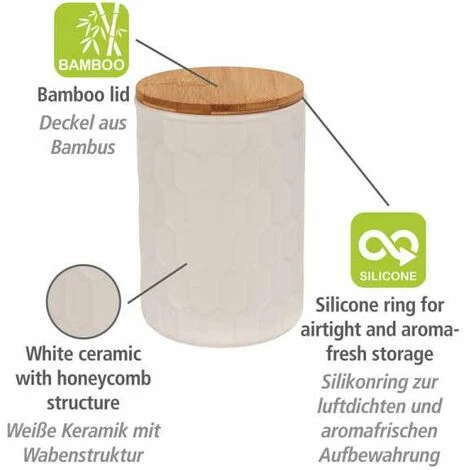 - La boîte de conservation au jeu de motifs magique : Les boîtes à provisions de la série Maya de WENKO séduisent avec leur couleur blanche au visuel discret et une structure alvéolée exclusive qui valorise avec sobriété et magie son aspect classique. Les jolis pots sont lavables au lave-vaisselle sans couvercle.
