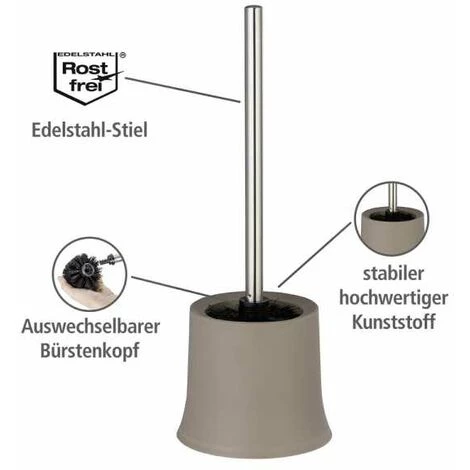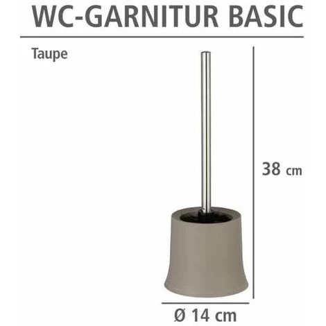 L’élégant ensemble WC Basic s’intègre dans votre style d’ameublement grâce à son design moderne. De qualité supérieure, l’ensemble WC en matière plastique robuste tient la brosse WC de manière décorative à portée de main, à l’endroit souhaité. Logée dans le beau récipient au fini taupe, la brosse WC à tête de brosse remplaçable noire de 8,5 cm de diamètre et manche en acier inox est comprise dans la livraison Ceci fait de ce pratique ensemble une aide utile dans la salle de bain ou les WC d’invités. Avec l’ensemble WC Samos et le porte-rouleaux de papier hygiénique Cover de WENKO, vous bénéficiez d’accessoires assortis pour l’ensemble WC.