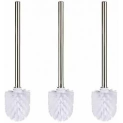 - Tête de brosse WC blanche avec manche en acier inox brillant