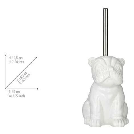 - Porte-brosse pratique : La forme de chien tendance fait de l’ensemble WC Bulldog en céramique blanche de haute qualité un accroche-regard pratique qui ne saurait manquer dans une toilette.