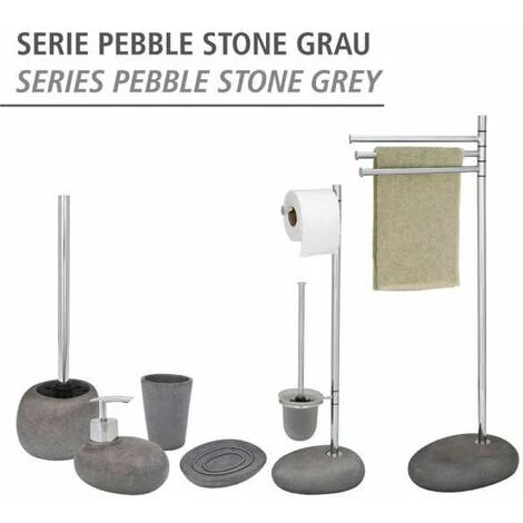 La série d’accessoires de bain Pebble Stone en polyrésine haut de gamme apporte une note charmante à la salle de bain. Grâce à ses formes arronides inspirées des galets, cette série haut de gamme fera toujours bonne impression et sera parfaite pour une utilisation quotidienne. L’ensemble WC élégant gris Pebble Stone permet de nettoyer les toilettes en profondeur. La brosse garantit une utilisation fiable grâce à ses brosses résistantes et flexibles. Le porte-brosse WC est en polyrésine haut de gamme et conserve la brosse à portée de main à l’endroit souhaité sans sacrifier l’aspect décoratif. La livraison comprend une brosse WC à tête remplaçable noire de Ø 7,5 cm et un manche en chrome brillant.l: 12,2 cm x H: 37 cm x P: 10,7 cm