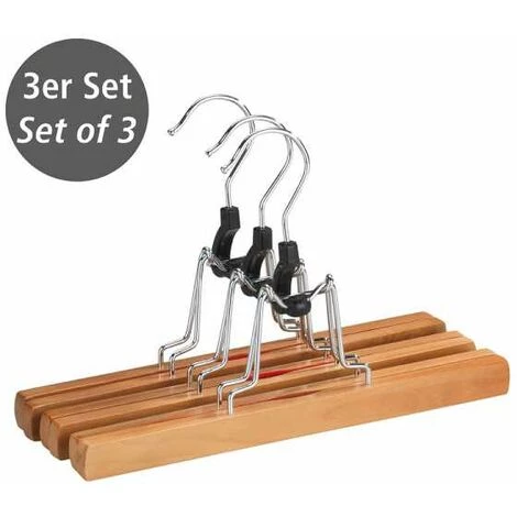 L’accrochoir optimal pour tous les pantalons : le cintre à pince en set pratique de 3 tient bien fermement tous les pantalons grâce à l’efficace mécanisme à charnière. Les deux barrettes sont pourvues d’une fourrure en feutre protectrice et antidérapante. Les tendeurs pour pantalons haut de gamme en bois sont les accessoires parfaits pour tous les pantalons de tailles S à XXL. La suspension des pantalons sur les beaux porte-pantalons leur épargnent plis et froissures. Les pantalons restent lisses.l: 25 cm x H: 16,5 cm x P: 2,2 cm