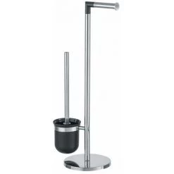 Fabriqué en acier inoxydable brillant, le combiné WC Parus WENKO est l’indispensable des toilettes. Il apporte la double fonctionnalité toute en simplicité et en discrétion. Le combiné WC Parus 2 en 1est l’association d’une brosse WC et un porte papier toilette sur pied. Simple et pratique , les accessoires WC sont toujours à portée de main. Le socle rond en acier inox apporte une stabilité optimal à l’ensemble WC. La brosse WC comprise dans la livraison est dotée d’une tête remplaçable noire de Ø 8,5 cm.