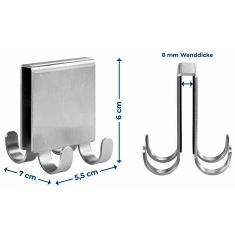 - Dimensions (L x H x P) : 5,5 x 6 x 7 cm, convient aux épaisseurs de mure de 8 mm max.