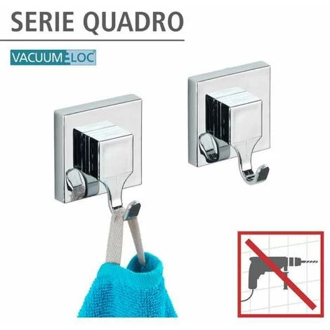 La série Vacuum-Loc® Quadro allie des formes puristes et élégantes avec une qualité haut de gamme. Les accessoires de salle de bain de cette série ne séduisent pas seulement par leur facilité de montage, mais aussi par leur design carré. Le pratique crochet mural Quadro en set commode de 2 unités est idéal pour ranger à portée de main les serviettes à mains et les serviettes de douche ou de bain dans la salle de bain et le WC d’invités, ou encore les torchons et les manique dans la cuisine. Les astucieux crochets sont fabriqués en matière plastique robuste et faciles à nettoyer. Tous les accessoires de salle de bain de la série Quadro ne bénéficient pas seulement d’une garantie fabricant de 5 ans, ils sont également dotés de l’innovation Vacuum-Loc® ! L’exceptionnel système permet une fixation rapide, simple et fiable des accessoires sur toutes les surfaces imperméables à l’air et légèrement irrégulières. D’un type nouveau, le système Vacuum-Loc® comprend une pompe et des tampons de fixation, il rend superflus le perçage de trous et le vissage et se passe de ventouses. Le montage du système Vacuum-Loc® est facile tel un jeu d’enfants avec la pompe. Un vide se crée dans le tampon par simple aspiration de l’air à l’aide de la pompe fournie et les adaptateurs avec l’accessoire peuvent porter des charges immédiatement. Le système Vacuum-Loc® fait oublier rapidement les produits tombés par terre et il est une innovation sur le marché. Le nouveau système VACUUM-LOC convainc sur toute la ligne, il a été élu Produit de l’année 2013/2014 par la revue de bricolage DIY (source : diy Fachmagazin 5/2014, page24 – Dähne Verlag GmbH ou sur le site www.diyonline.de). Outre la distinction « Produit de l’année», le système Vacuum-Loc® s’est vu décerner récemment la note « EXCELLENT ». La revue Do-it-Yourself « Selbst ist der Mann » a testé notre système Vacuum-Loc®. L’innovant système de fixation et son adhérence fiable sans perçage de trous ont pu convaincre et ont obtenu la meilleure note. (Source : Selbst ist der Mann – édition de juillet 2014 – page 42 ou à l’adresse www.selbst.de) Les Vacuum-Loc® se repositionnent à volonté et se démontent sans laisser de traces. Le système Vacuum-Loc® bénéficie de la protection par un brevet européen et vous garantit une adhérence fiable. Chaque tampon de fixation peut supporter durablement une force de traction atteignant 33 kg. Pour ce produit, vous bénéficiez d‘une garantie de 5 ans à compter de la date d‘achat. La garantie porte sur tous les vices de matériau et de fabrication qui altèrent le bon fonctionnement. Sont exclus les dommages résultant d‘un maniement incorrect ou de l‘usure naturelle. La garantie ne restreint aucune vos droits à la garantie légaux. En cas de garantie, veuillez renvoyer gratuitement l‘article accompagné du ticket de caisse et convenablement emballé pour le transport à l‘adresse suivante : Wenko-Wenselaar GmbH & Co. KG · Abteilung « Retouren » Im Hülsenfeld 10 · 40721 Hilden, Allemagne [email protected]