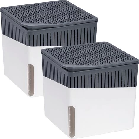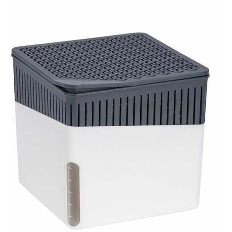 Le déshumidificateur design CUBE de WENKO de couleur blanche classique vous garantit à la fois moins d’humidité et un climat intérieur de bien-être ! Et ce moderne déshumidificateur d’air s’intègre avec goût dans chaque pièce et y crée un point de mire visuel par sa forme de cube tendance. Particulièrement pratique : le déshumidificateur peut être utilisé de manière variée ! Dans la voiture, la caravane ou le campeur, les vitres de voiture embuées ou même gelées de l’intérieur deviennent un désagrément révolu. Comme un aimant, le déshumidificateur extrait l’humidité de l’habitacle de la voiture. L’époque des caves et des espaces habitables froids et humides est également révolue. Le déshumidificateur protège de manière intensive les murs, les meubles et les textiles contre l’humidité, la moisissure et les odeurs désagréables. Ainsi, il prévient de plus la formation de rouille et de taches d’humidité et crée un climat intérieur agréable dans la cave, la salle de bain, la chambre à coucher et toute les autres pièces, ainsi que dans les armoires. La malin déshumidificateur est parfaitement approprié pour les pièces d’un volume maximal de 40 m³. Le déshumidificateur contient 500 g de chlorure de calcium, qui, immédiatement après la pose, commence à extraire l’humidité de l’air ambiant. Un indicateur de niveau d’eau permet de lire aisément, à tout moment, le niveau de l’eau qui s’accumule dans l’humidificateur, preuve de l’efficacité de l’humidivore de WENKO. Le déshumidificateur se passe totalement de courant électrique. Il extrait l’humidité de l’air ambiant pendant une durée qui atteint 2 mois. Bien évidemment, des kits de recharge de WENKO sont disponibles sous les numéros d’article 50260100 et 50261100. Une déshumidification durable de l’air ambiant pendant des mois ou des années est possible aisément. Le jury spécialisé du Plus X Award a récompensé le déshumidificateur de pièces Cube de WENKO pour l’année 2017. Cette remarquable distinction lui a été décernée dans les deux catégories design et fonctionnalité. Le Plus X Award est aujourd’hui le prix de l’innovation le plus renommé dans le monde pour la technologie, le sport et le style de vie. La condition préalable pour l’attribution de ce prix est la suivante : le produit doit être de qualité élevée, fonctionnel et présente un design à la pointe du progrès. Vous pouvez ainsi être certain qu’en achetant le déshumidificateur de pièces Cube de WENKO, vous acquérez un excellent produit, de qualité supérieure et de belles formes, doté d’un label de qualité. La livraison comprend deux déshumidificateurs design Cube et deux blocs de chlorure de calcium de 500 g chacun.