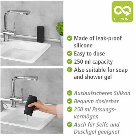 - Contenu de la livraison : Distributeur de produit vaisselle Easy Squeez-e de WENKO, distributeur à savon moderne en silicone, contenance env. 250 ml, dimensions (l/p x h) : Ø 6 x 14 cm
