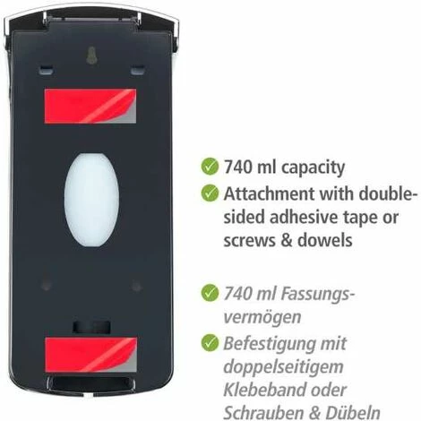 - Hygiène des mains efficace : Le distributeur mural offre une protection fiable contre les virus grâce à une hygiène des mains irréprochable, avec une généreuse capacité de remplissage de 740 ml pour les désinfectants, les produits de lavage et de soins. Le distributeur en plastique est facile à nettoyer et le distributeur de savon liquide se recharge facilement.