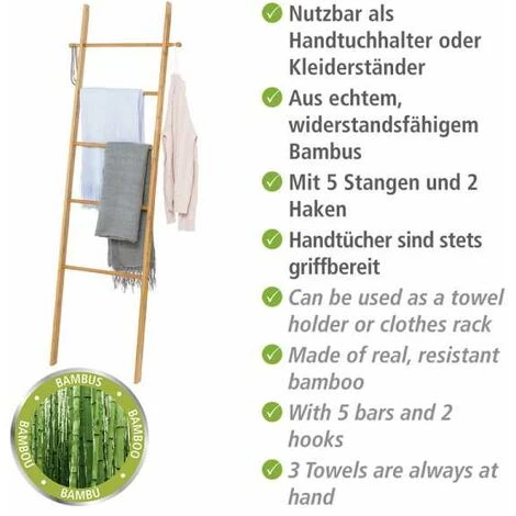 - Echelle porte-serviette de qualité supérieure avec 5 barres et 2 crochets