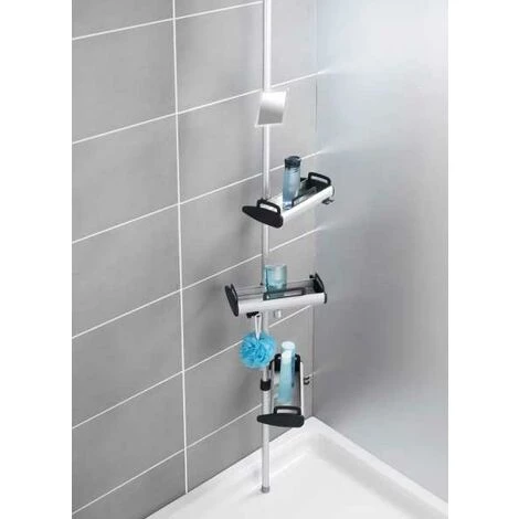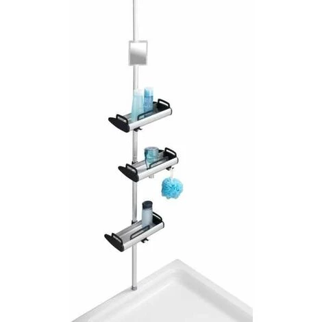Avec l’étagère de douche télescopique Line de WENKO, vous n’apporterez pas seulement de l’ordre dans la salle de bain, vous y créerez aussi un point de mire visuel. L’étagère a été fabriquée en aluminium inox massif et en matière plastique. Le design est esthétique et présente un coloris argent et noir. La pratique étagère télescopique peut être utilisée non seulement dans la douche, mais aussi dans l’angle de la baignoire et dans toute la salle de bain. Avec trois rayons de rangement commodes, cette étagère de salle de bain offre beaucoup de place pour le shampoing, le savon, les éponges ou bien d’autres accessoires. Un rayon de l’étagère est pourvus de trous généreux pour les shampooings posés sur la tête. Les trous servent en même temps d’écoulements d’eau. Le crochet vous permet d’y accrocher sans encombrer gants de toilette, éponges de douche ou brosses à mains. Un miroir antibuée parachève l’étagère de douche Line. Le miroir est une aide pratique notamment lors du rasage du visage. La barre télescopique permet de régler la hauteur de l’étagère. Il est en outre possible de déplacer latéralement les rayons. Le jury spécialisé du Plus X Award a récompensé l’étagère de douche télescopique Line de WENKO pour l’année 2017. Cette remarquable distinction lui a été décernée dans les deux catégories design et fonctionnalité. Le Plus X Award est aujourd’hui le prix de l’innovation le plus renommé dans le monde pour la technologie, le sport et le style de vie. La condition préalable pour l’attribution de ce prix est la suivante : le produit doit être de qualité élevée, fonctionnel et présente un design à la pointe du progrès. Vous pouvez ainsi être certain qu’en achetant l’étagère de douche télescopique Line de WENKO, vous acquérez un produit excellent, ingénieux et de belles formes, doté d’un label de qualité. La commode étagère de douche bénéficie d’une garantie de 10 ans. Pour ce produit, vous bénéficiez d‘une garantie de 10 ans à compter de la date d‘achat. La garantie porte sur tous les vices de matériau et de fabrication qui altèrent le bon fonctionnement. Sont exclus les dommages résultant d‘un maniement incorrect ou de l‘usure naturelle. La garantie ne restreint aucune vos droits à la garantie légaux. En cas de garantie, veuillez renvoyer gratuitement l‘article accompagné du ticket de caisse et convenablement emballé pour le transport à l‘adresse suivante : Wenko-Wenselaar GmbH & Co. KG · Abteilung « Retouren » Im Hülsenfeld 10 · 40721 Hilden, Allemagne [email protected]