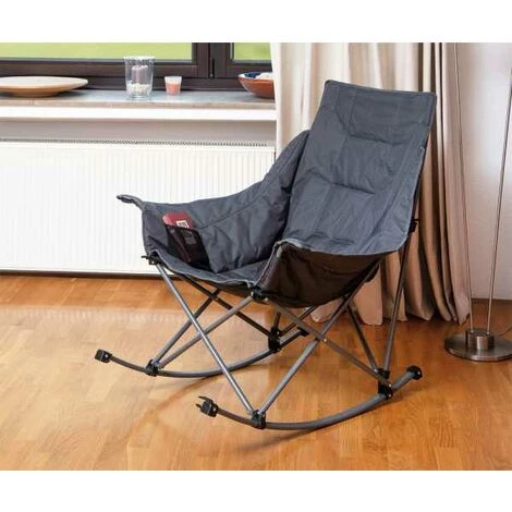 - Rangement pratique : Lorsqu’elle n’est pas utilisée, la chaise à bascule repliable peut être repliée facilement, en quelques secondes, et rangée avec faible encombrement dans le sac de transport fourni.