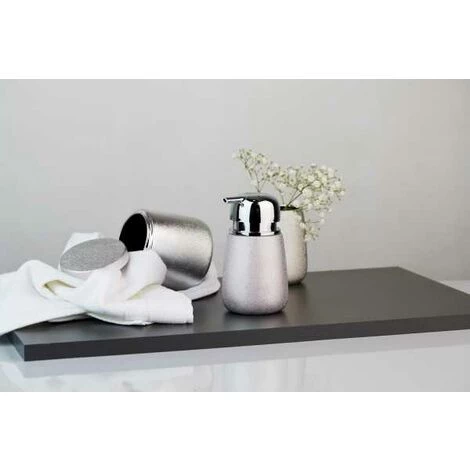 Bienvenue dans le monde resplendissant – La série d’accessoires de salle de bain Glimma est une série céramique attrayante et de haute qualité. La surface structurée à l’effet pailleté alternant enchante chaque salle de bain et crée une ambiance glamour. Le gobelet à brosser les dents Glimma en argent extravagant range vos brosses à dents et pâtes dentifrices à tout moment de manière élégante et à portée de main. De quoi motiver même les plus grands ronchons du brossage des dents ! Que diriez-vous d’un gobelet pour chaque membre de la famille ? Le gobelet à brosser les dents Glimma se combine particulièrement bien avec le distributeur de savon, la boîte universelle et l’ensemble WC. De cette façon, à coup sûr, vous donnez à vos quatre murs un charme luxueux. Envie de diversité de couleurs ? Dans ce cas, les ustensiles de salle de bain Glimma sont exactement ce qu’il vous faut ! Outre la tonalité glamour du champagne, WENKO propose également les variantes « argent extravagant » et « or rose tendance ».