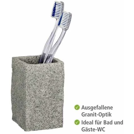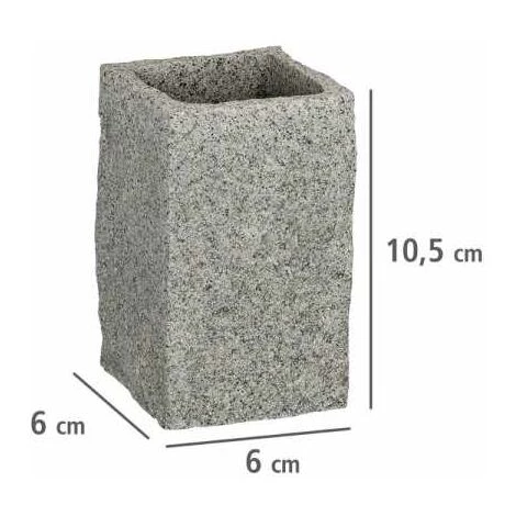 Le gobelet à brosser les dents carré de la série de salle de bain Granit est fabriqué en polyrésine haut de gamme L’aspect de granite original confère à la salle de bain et au WC d’invités un charme tout individuel. Les brosses à dents et le dentifrice trouveront une place décorative dans le gobelet à brosser les dents de couleur granite, tout en restant à portée de main. De quoi motiver même les plus grands ronchons du brossage des dents. Que diriez-vous d’un gobelet pour chaque membre de la famille ?l: 6,5 cm x H: 10,6 cm x P: 6,5 cm
