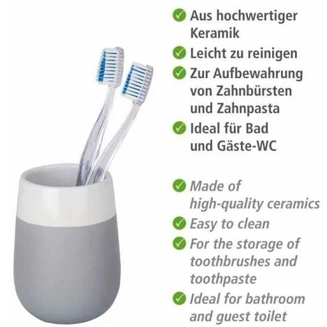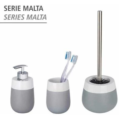 La série d’articles de salle de bains Malta, en céramique haut de gamme, confère à chaque salle de bain une élégance toute moderne. Grâce à ses formes de bon goût et à la couleur blanche-grise, cette série en céramique haut de gamme fera toujours bonne mine en utilisation quotidienne et sera un point de mire dans chaque salle de bain et WC d’invités. L’original gobelet à brosser les dents Malta offre un emplacement décoratif pour les brosses à dents et le dentifrice et tient ces derniers à portée de main à l’endroit souhaité. De quoi motiver même les plus grands ronchons du brossage des dents. Que diriez-vous d’un gobelet pour chaque membre de la famille ?Ø: 8 cm x H: 11 cm