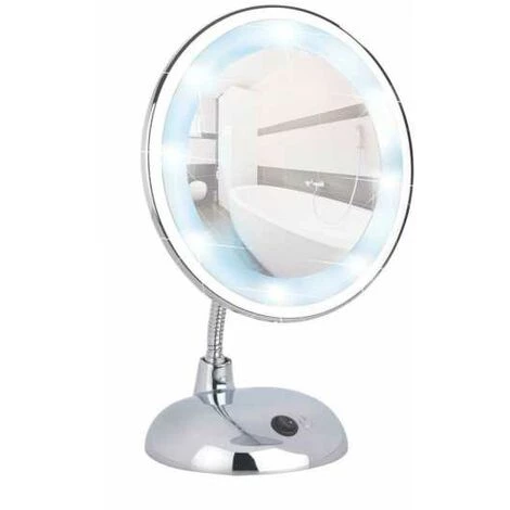 Le miroir cosmétique sur pied Style, avec éclairage par DEL, complète la salle de bain par un accessoire discret et fonctionnel. Grâce à sa surface grossissante à 300 % (Ø 16 cm), il est particulièrement adapté pour une utilisation cosmétique, pour plus de plaisir lors du maquillage et du rasage. Décoratif, le miroir sur pied en chrome peut être orienté individuellement dans tous les sens grâce à son col de cygne de grande élégance. Doté de DEL intégrées, il offre une intensité lumineuse élevée. La durée de vie de la technologie à DEL intégrées (fonctionnent sur piles) est extrêmement élevée. Vendu sans piles (3 x type AA).l: 17,5 cm x H: 28 cm x P: 12 cm