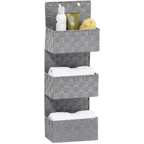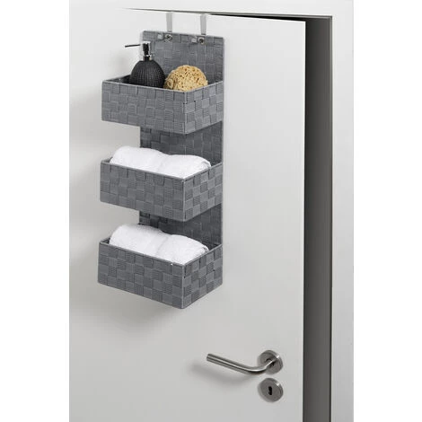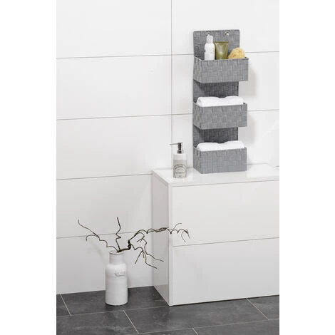 Le moderne organiseur de salle de bain Adria Gris met fin aux problèmes d’ordre. L’aide intelligente en matière plastique tressée haut de gamme offre sur trois niveaux beaucoup de place et d’ordre pour les barrettes, les brosses et bien d’autres ustensiles de salle de bain. Particulièrement pratique : le panier de salle de bain peut être placé, accroché ou fixé au mur facilement – vous avez le choix. La livraison comprend à la fois des crochets en acier inox haut de gamme pour la fixation sur une porte et des vis et des chevilles. Les crochets sont adaptés pour des feuillures de porte d’une épaisseur de 2 cm et 4 cm. Bien évidemment, il reste possible de fermer facilement la porte. Sa couleur grise élégante fait un effet noble et s’intègre de manière réussie dans chaque environnement.