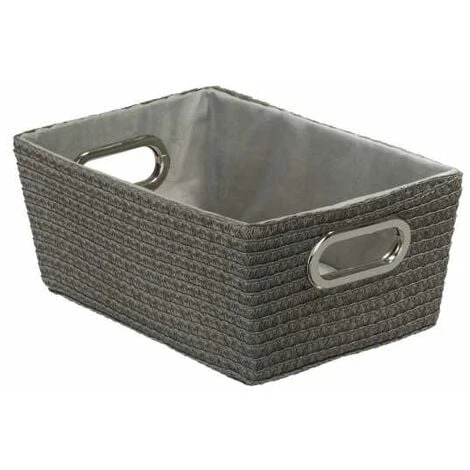 Noble, le panier de salle de bain gris Chromo apporte une esthétique nouvelle et de l’ordre dans l’ensemble du ménage. Son design moderne en matière plastique tressée revalorise élégamment toutes les pièces. Les somptueuses finitions avec doublure en coton et des poignées intégrées en chrome font du panier un véritable multitalents. Dans la salle de bain, le panier apporte style et ordre pour le rangement des serviettes d’invités ou des accessoires de salle de bain. Dans les armoires-penderies également, la boîte décorative aide à ranger dans l’ordre linge et chaussettes. Dans la cuisine, les ustensiles de cuisines y trouvent un emplacement esthétique, auquel ils sont toujours à portée de main en attendant la prochaine utilisation.l: 28 cm x H: 12 cm x P: 19,5 cm