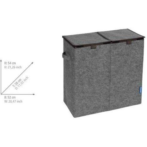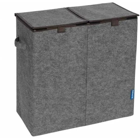 Un matériau classique redécouvert – la série d’articles de rangement en feutre de haute qualité confère par son gris tendance avec des applications discrètes de couleur marron un charme naturel et chaleureux à votre ambiance intérieure. La série d’articles d’aide à l’ordre complète le ménage par des accessoires à la fois décoratifs et pratiques, qui vous offrent les possibilités d’utilisation les plus souples. Le panier à linge Duo, d’une capacité de 82 litres, n’offre pas seulement beaucoup de place à votre linge en attente du prochain lavage, il vous donne aussi la possibilité de trier le linge dans ses deux compartiments, par ex. selon la couleur ou la température. Particulièrement pratique : Les deux ingénieux couvercles rabattables empêchent les regards indésirables à l’intérieur des paniers à linge. Les deux bretelles de transport intégrées garantissent un transport commode.