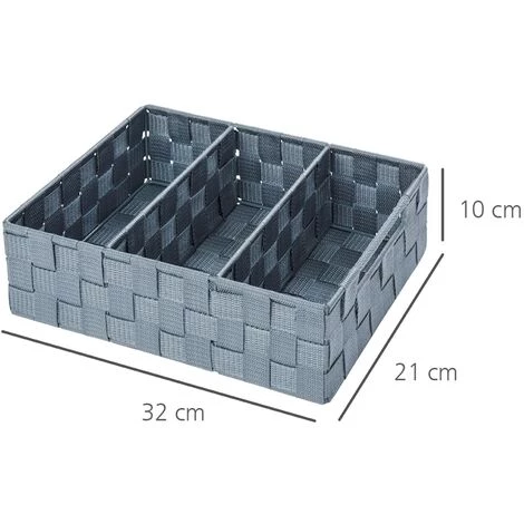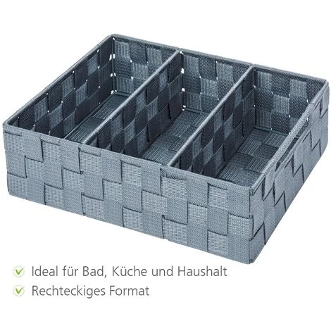 - Etendue de la livraison : Petite corbeille de rangement Adria gris de WENKO, dimensions L/H/P : 26 cm x 9 cm x 26 cm, poids : 320 g, avec cloison, polypropylène, lot de 2 éponges offert.