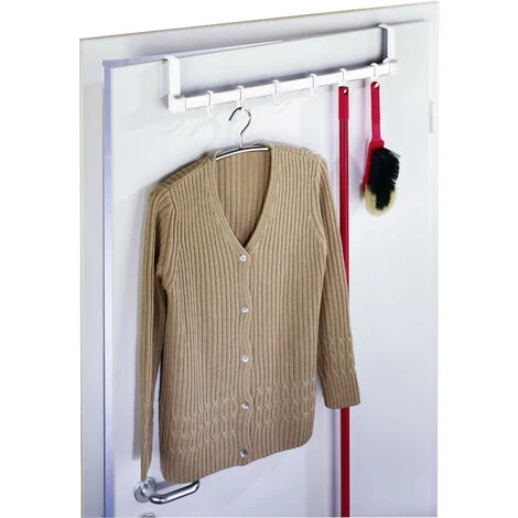 Le portemanteau de porte pratique est fabriqué à base de plastique blanc résistant. Grâce à son aspect discret, il s’intègre dans tout ameublement intérieur tout en créant un espace supplémentaire au vestibule, dans la chambre à coucher ou la salle de bain. Les six crochets permettent d’accueillir blousons, chemisiers, serviettes et draps de bain, peignoirs etc. Le portemanteau est simplement suspendu sur la porte, sans vis, sans percer. Le porte se ferme sans problème malgré la présence du portemanteau.