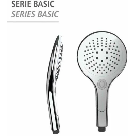 - Grand pommeau de douche avec 3 types de jet d’eau différents, à sélectionner via un bouton-poussoir pratique
