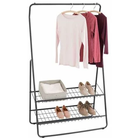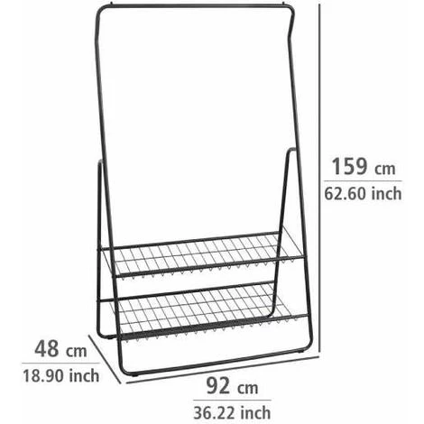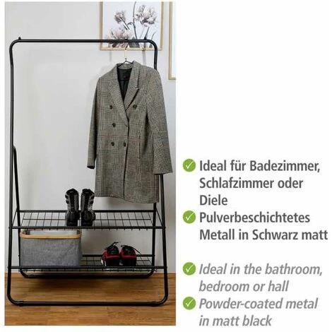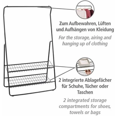 - Étendue de la livraison : Porte-vêtements Shiva en noir mat de WENKO, avec barre porte-vêtements et 2 supports de rangement, dimensions (L x h x l) : 92 x 159 x 48 cm