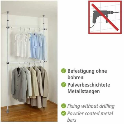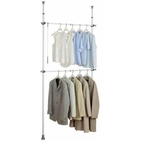 - Système de rangement de vêtements souple, avec deux barres de suspension, y inclus crochet porte-vêtement pratique