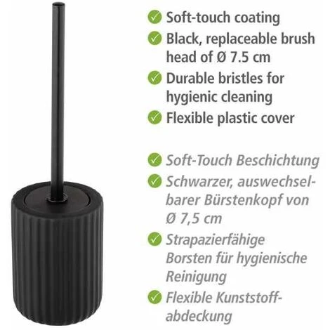 - Accessoire indispensable : Le porte brosse WC fermé tient la brosse WC en matière plastique à tout moment à portée de main et garantit un nettoyage hygiénique grâce à ses poils robustes. La tête de brosse WC remplaçable d’un diamètre de 7,5 cm est protégée des regards par un couvercle en matière plastique souple de couleur noire.