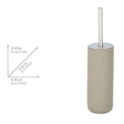 La moderne série d’accessoires de salle de bain Joy provoquera une grande admiration dans chaque salle de bain. Elle est fabriquée avec un aspect ciment tendance et séduira par son design hors du commun en taupe tendance. L’ensemble WC Joy pratique permet de nettoyer les toilettes en profondeur. La brosse garantit une utilisation fiable grâce à ses poils à la fois robustes et flexibles. D’autre part, la forme fermée de l’ensemble WC ne laisse s’échapper aucune odeur désagréable et la brosse WC n’est pas directement visible. La brosse WC avec tête de brosse remplaçable noire de Ø 6,5 cm est comprise dans la livraison. L’ensemble WC se combinera particulièrement bien avec le distributeur de savon et le gobelet à brosser les dents ainsi que le support de rangement universel de la série d’accessoires de salle de bain Joy. Vous avez donc désormais la possibilité de donner un style au look ciment original à tous les recoins de votre salle de bain.