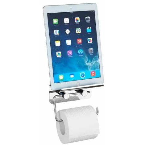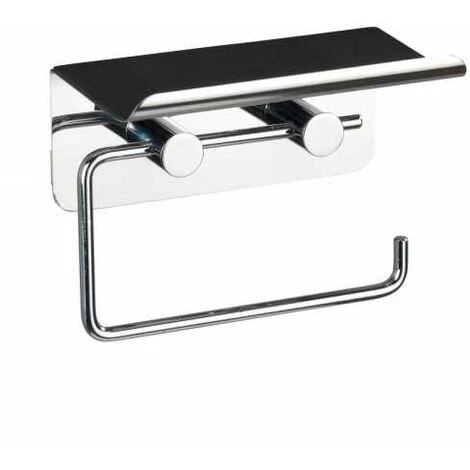 En acier inox haut de gamme. Avec support pratique pour les smartphones, les tablettes, etc. Avec revêtement antiglisse. Vendu avec ruban adhésif double face pour fixer sans percer. Solution 2-en-1 pour la salle de bain Support pratique (mesure: 14 x 8 cm) pour les smartphones, les tablettes, etc. Tient le papier toilette à portée de main En acier inox de qualité supérieurel: 14 cm x H: 11,5 cm x P: 7 cm