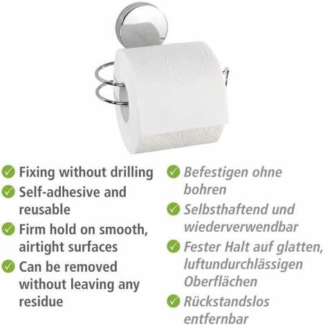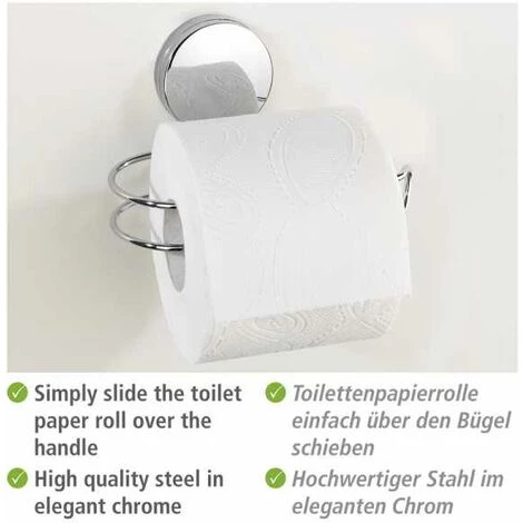 - Étendue de la livraison : Dérouleur de papier hygiénique Static-Loc Plus Osimo de WENKO, en acier chromé, fixations Static-Loc Plus, force de traction jusqu’à 10 kg, dimensions (L x h x l) : 15,5 x 13 x 8,5 cm