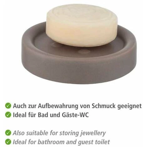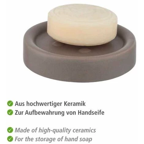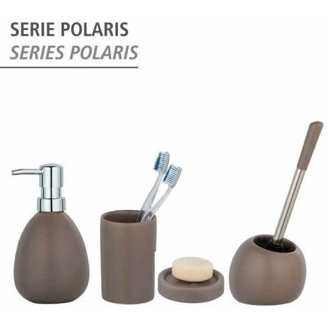La série d’accessoires de salle de bain Polaris de WENKO se caractérise par des formes modernes, la céramique haut de gamme et un fini doux mat. Tous les accessoires de cette très belle série d’articles confèrent à la salle de bain une élégance toute discrète. Le porte-savon décoratif Polaris de couleur taupe tendance est un point de mire particulier et il est idéal pour la salle de bain, le WC ou la cuisine. Le savon reste toujours propre et à portée de main à l’endroit souhaité, dans la jolie coupe. Pour accompagner la coupe à savon moderne, WENKO propose également dans sa gamme Polaris l’ensemble WC, le distributeur de savon et le gobelet à brosser les dents Polaris. Votre salle de bain à domicile se transformera ainsi en une véritable oasis de bien-être.