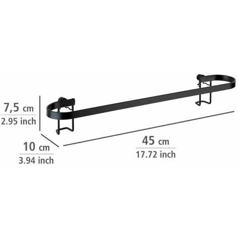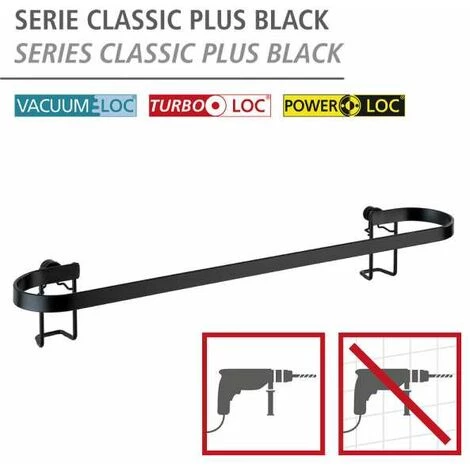 L’innovante série Classic Plus Black de WENKO allie des formes tendance à une qualité triée sur le volet. Les accessoires de salle de bain de cette série en acier sont pourvus d’un revêtement spécial noir, qui leur garantit une protection efficace contre la rouille. La série de salle de bain tendance, de style industriel, confère à toutes les pièces la petite note particulière. Par leur design linéaire et leur forte présence, les accessoires créent le contraste idéal avec les cuisines et les salles de bain claires. La barre porte-serviettes peu ordinaire Classic Plus Black se compose d’une longue barre de suspension offrant beaucoup de place pour deux serviettes de douche ou une serviette de bain. Chaque serviette peut ainsi sécher convenablement. La livraison comprend des vis et des chevilles pour le montage mural. Le système Classic Plus propose en alternative trois autres possibilités pour la fixation – sans percer de trous. Les adaptateurs appropriés suivants sont proposés séparément : Variante 1 : Adaptateur Vacuum-Loc (numéro d’article : 23891100) L’exceptionnel système d’aspiration à vide permet une fixation rapide, simple et fiable des accessoires et garantit une adhérence forte sur les surfaces imperméables à l’air, planes et légèrement irrégulières. Variante 2 : Adaptateur Turbo-Loc (numéro d’article : 23889100) La fixation murale Turbo-Loc est un système à tampon adhésif spécial offrant une adhérence extrêmement forte sur toutes les surfaces lisses. Variante 3 : Adaptateur Power-Loc (numéro d’article : 23890100) Agréé par le TÜV, le système de collage à chambres Power-Loc se caractérise par une fixation extrêmement rigide sur toutes les surfaces résistantes, telles que les carrelages, la pierre naturelle, le verre, le béton, le métal, le bois et de nombreux plastiques. Le système de fixation adhère sans problème même sur les surfaces rugueuses et légèrement inégales. À vous de décider ! Si vous choisissez l’une des variantes sans perçage de trous, veuillez commander séparément l’adaptateur correspondant. Ou utilisez tout simplement le matériel de fixation fourni. Pour ce produit, vous bénéficiez d’une garantie de 3 ans à compter de la date d’achat. La garantie porte sur tous les vices de matériau et de fabrication qui altèrent le bon fonctionnement. Sont exclus les dommages résultant d’un maniement incorrect ou de l’usure naturelle. La garantie ne restreint aucunement vos droits à la garantie légaux. En cas de garantie, veuillez renvoyer gratuitement l‘article accompagné du ticket de caisse et convenablement emballé pour le transport à l‘adresse suivante : Wenko-Wenselaar GmbH & Co. KG · Abteilung « Retouren » Im Hülsenfeld 10 · 40721 Hilden, Allemagne [email protected]