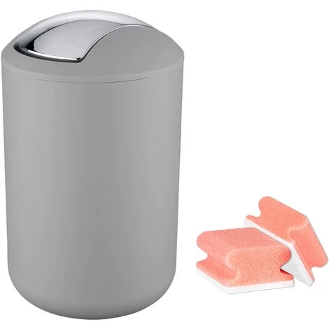 - Détail de la livraison : poubelle avec couvercle basculant Brasil L en gris, 6,5 litres, en plastique incassable, dimensions (L/D x H) : Ø 19,5 x 31 cm,2 éponges offertes en rouge/blanc.