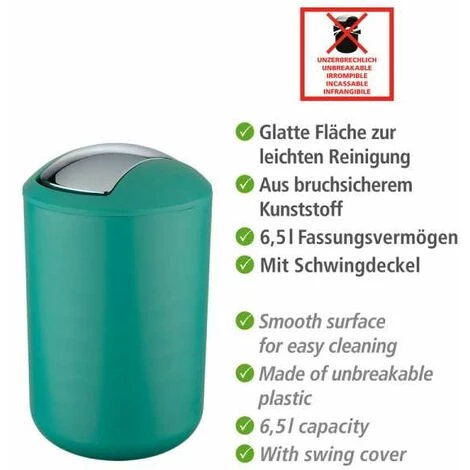 La poubelle cosmétique de bon goût de la série d’articles de salle de bain Brasil convainc par son élégance sobre. La poubelle cosmétique de couleur verte fraîche, d’une capacité de 6,5 litres, est fabriquée en matière plastique spéciale et donc absolument incassable. Le design arrondi confère à chaque salle de bain un charme particulier. Grâce à sa surface lisse, la poubelle cosmétique est particulièrement facile à nettoyer et donc très hygiénique. Le couvercle chromé présente un beau contraste sur le fond vert de la matière. Le couvercle oscillant permet un maniement en toute aisance tout en interdisant la vue sur le contenu. Dans la cuisine, au bureau, dans le WC d’invités ou la chambre d’enfants également, la poubelle à couvercle oscillant haut de gamme fera très bonne mine. La poubelle à couvercle oscillant de couleur verte se combine parfaitement avec les autres ustensiles de salle de bain de la série Brasil.