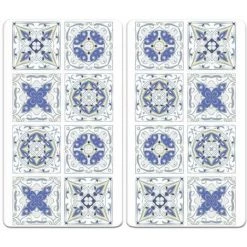 Les protège-plaques de cuisson au design de carreaux décoratifs bleus et blancs apportent une touche méridionale à la cuisine. Les grandes plaques en verre ne sont pas seulement un accroche-regard décoratif, elles offrent également un espace supplémentaire et transforment la cuisinière en plan de travail. Qu’il s’agisse d’une cuisinière vitrocéramique, électrique ou à gaz, les pieds variables des protège-plaques de cuisson universels Carreaux, en deux éléments, tiennent toujours la distance nécessaire. Les protège-plaques de cuisson universels Carreaux peuvent également être utilisés pour trancher, servir et décorer. Résistante aux éraflures et exempte de pores, la surface empêche l’incrustation de bactéries et d’odeurs et répond ainsi aux exigences hygiéniques les plus sévères. La matière haut de gamme est robuste, résistante aux chocs.