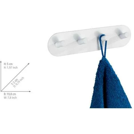De qualité supérieure, la réglette de crochets Piceno Quadro de WENKO, en acier inox dépoli blanc, offre 4 crochets et elle est parfaitement adaptée pour tout ménage de plusieurs personnes. L’élégante réglette carrée offre suffisamment de place pour les serviettes à mains, les gants de toilette ou les serviettes de bain et crée ainsi de l’ordre dans la salle de bain. La pratique réglette de crochets fait également bonne mine dans la cuisine pour les torchons vaisselle et les maniques ou dans le vestibule en tant que patère de portemanteau. Pour fixer, il suffit de décoller le film protecteur et de coller la patère à l’endroit souhaité. En cas de besoin, elle peut être démontée sans laisser de résidus et sans abîmer le support.