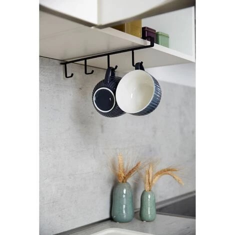 Lorsque l’espace dans la cuisine est trop juste, ce porte-tasses est une alternative pratique pour ranger un maximum de tasses dans l’armoire ou sous l’étagère, de manière ordonnée et peu encombrante. Les tasses s’accrochent tout simplement sur les crochets. Vous rangerez ainsi un maximum de quatre tasses.